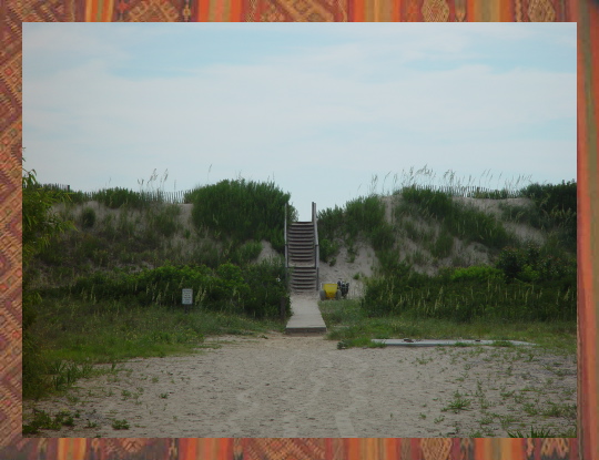 It rained all day Saturday on the way down, and was supposed to rain all day Sunday, but Sunday morning, I walked down to the beach during a break. This is the deck walkway over the dunes.
