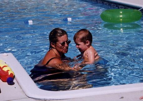 Leslie and Austin frolic in the pool