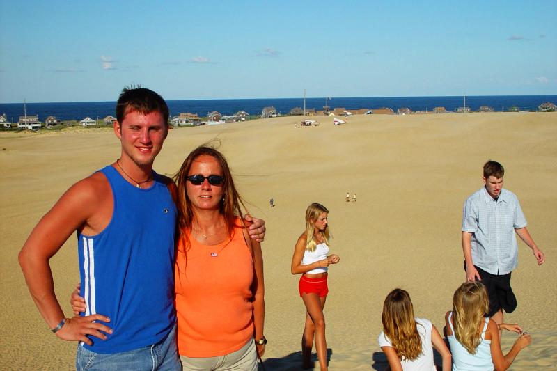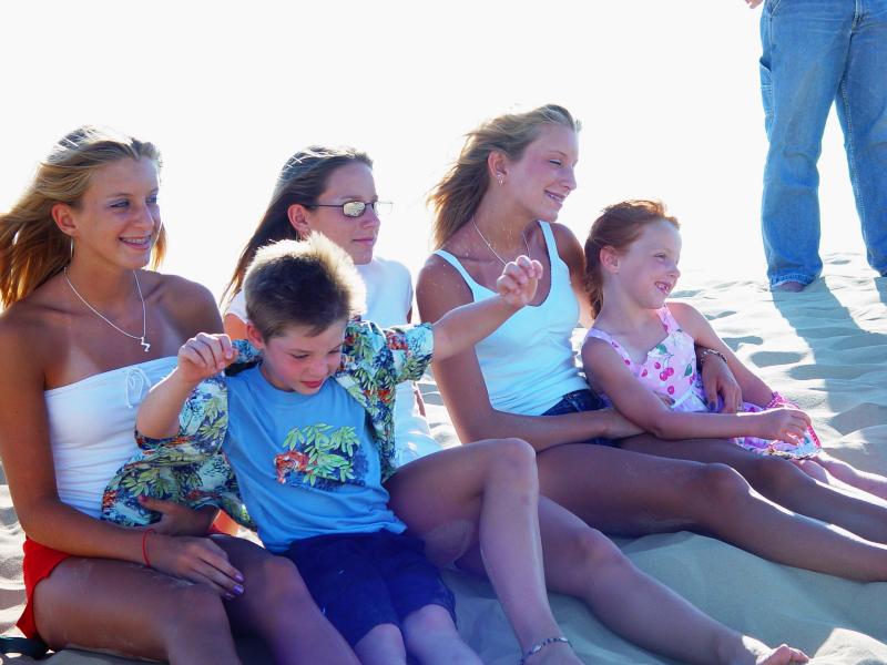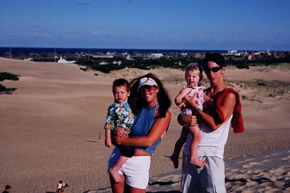 Shelly, Gabe, and the twins on Jockey's Ridge, in Kitty Hawk, N.C.